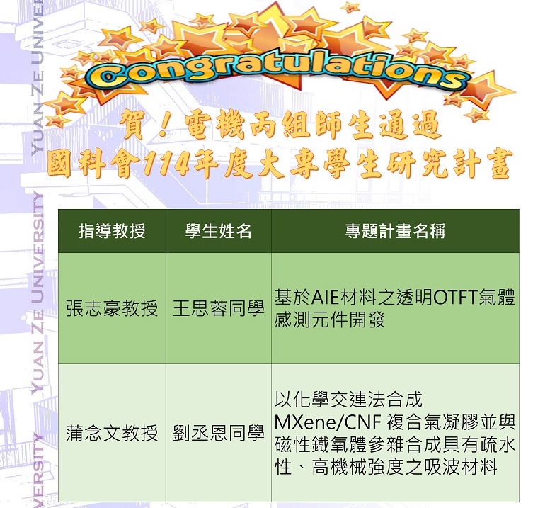 賀!電機系丙組蒲念文教授實驗室 鄺以樂、趙昱傑、葉駿騏、陳佳慧、曾翊宸、吳政勳、陳政穎、易璟耀、陳伯修、易璟耀、劉丞恩等11人 榮獲中國材料科學學會 材料科學學生論文獎 優等
