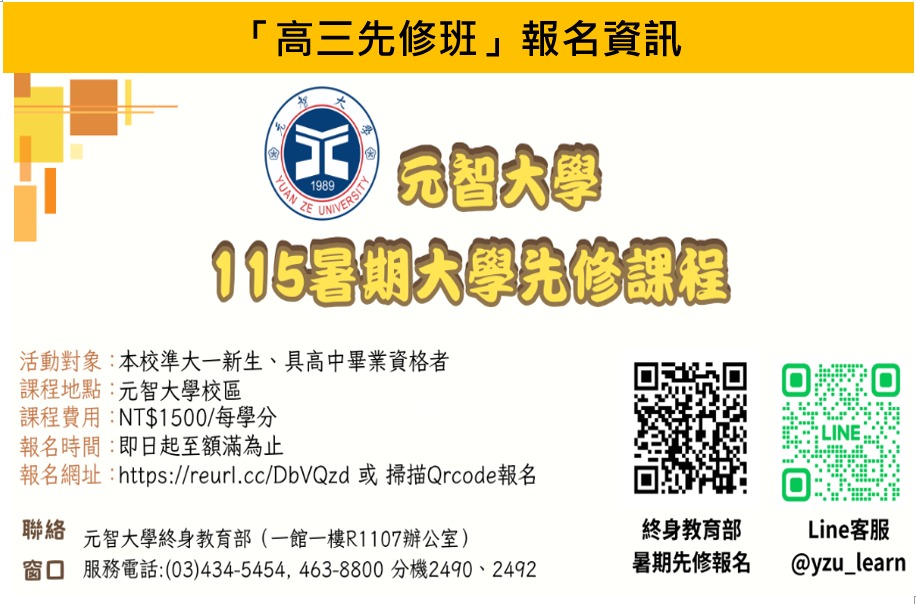 ★報名網址:https://localadmissions.yzu.edu.tw/newsCont?id=61